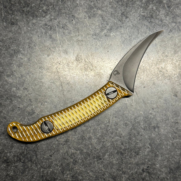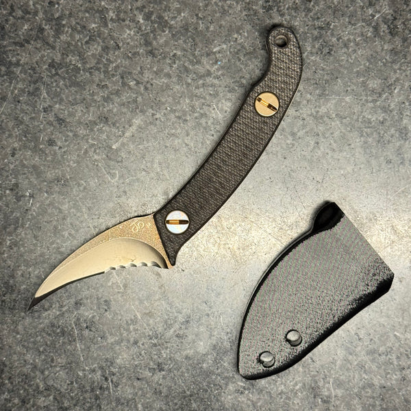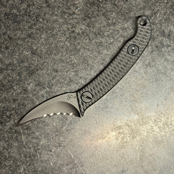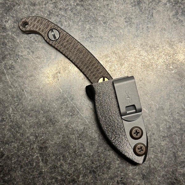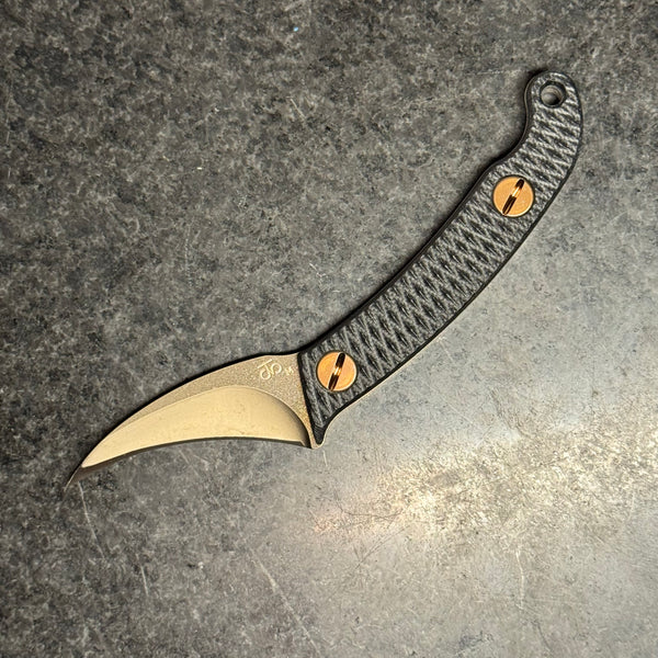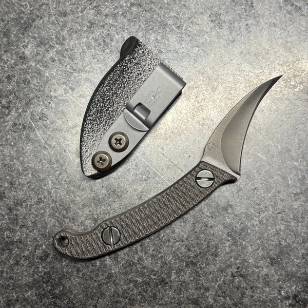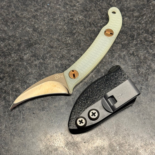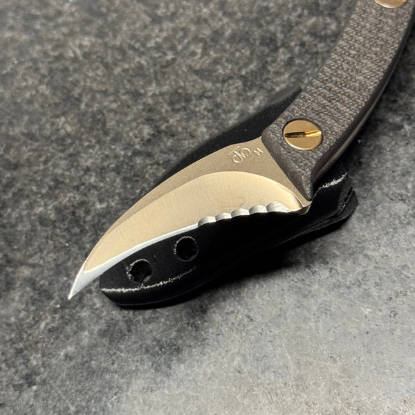 The Elvia C is a compact version of our full size Elvia. The blade is made from CPM Magnacut with a CNC machined hollow grind and reinforced point.